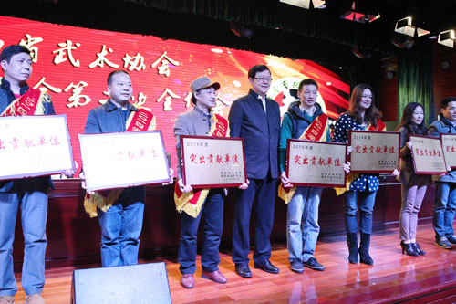 会议期间,还表彰了在2014年武术工作中表现突出的先进单位和先进个人。
