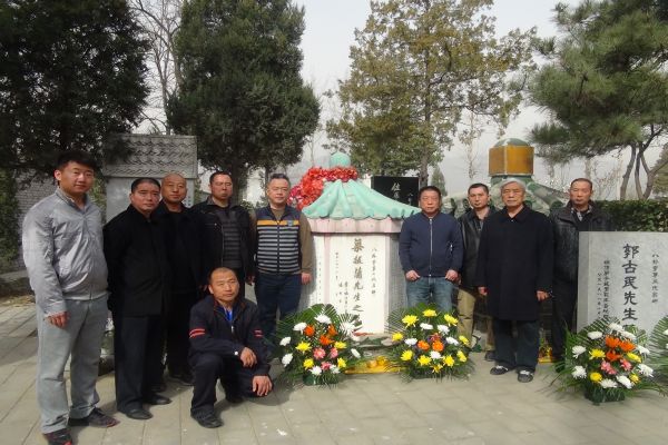 大家怀着无比崇敬的心情,在张全亮老师率领下向两位恩师和八卦掌创始人董海川,梁式八卦掌代表人梁振蒲、八卦掌名家郭古民敬献鲜花,擦拭墓碑,三鞠躬。张全亮老师还代表全体弟子向两位恩师的在天之灵汇报“鸣生亮武学研究会”的发展情况。他说:“尊敬的师父、师娘,弟子张全亮今天率您的部分再传弟子来给您扫墓,我们无限怀念您。多年来,我们一直努力学习您的拳术、弘扬您的高尚武德、精湛技艺和博大精深的武学思想。我们所创建的‘鸣生亮武学研究会’在全国各地已发展到40多个辅导站,我的入门弟子已达200余人。您所传授给我们的梁式八卦掌和吴式太极拳,已先后被评为区级和国家级非物质文化遗产代表性项目,现在我们已把吴氏太极拳(北派)和梁式八卦掌传到了湖北、江苏、浙江、海南、山东、山西、辽宁、黑龙江、哈尔滨等很多地区。仅大兴地区练习吴式太极拳和梁式八卦掌的人群就有三千多人。您老人家听了弟子的汇报一定会含笑九泉。敬爱的恩师,安息吧!我们会不断努力,争取更大的成绩,为师门争光!我们要进一步号召广大门人弟子继承先辈遗志,以先辈为榜样,为弘扬‘鸣生拳法’不断作出自己的贡献”。扫墓仪式结束,大家一起瞻仰碑文,在老前辈墓前合影留念。
